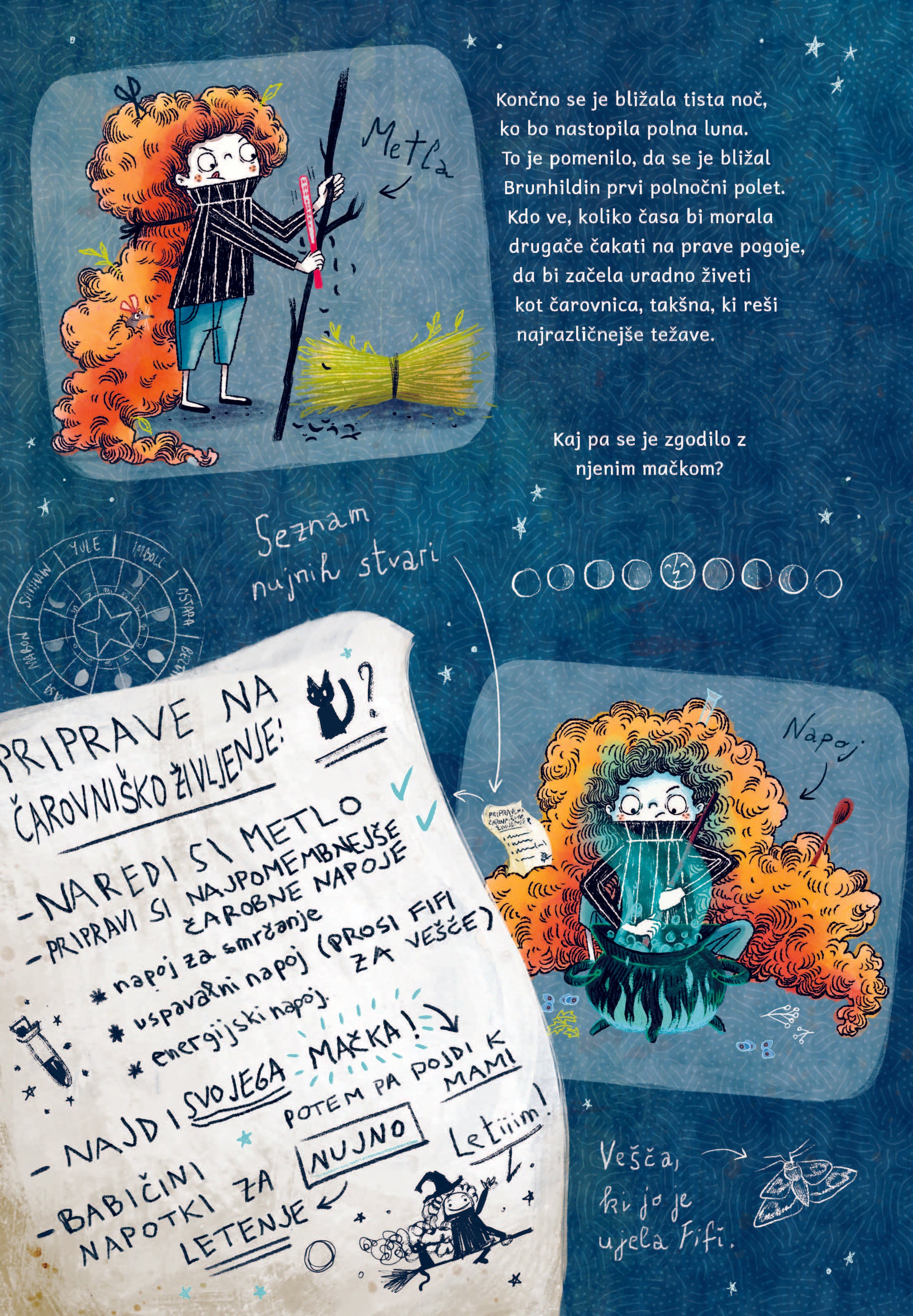 Prav v tistem trenutku je odbila polnoč: nadaljevati sta morala s prvim poletom! Ni bil takšen, kot sta pričakovala, a sta zdaj bolj kot kadarkoli prej čutila vez, ki ju je družila. Bila sta navdušena in zelo začudena! Zajahala sta metlo in zares poletela...