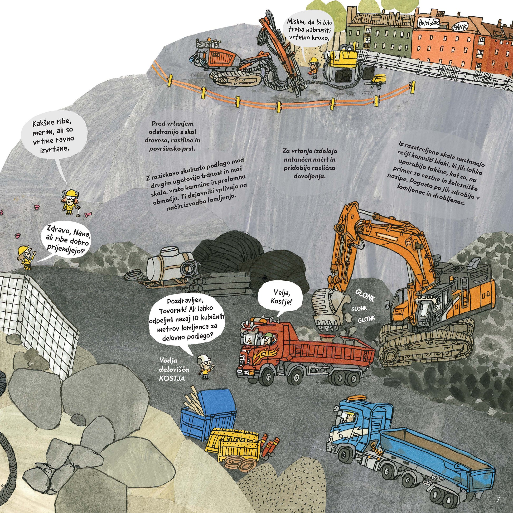 Kamen, četrta knjiga v priljubljeni seriji o gradbiščih avtorja Savolainena. Tokrat spremljamo razstreljevanje in drobljenje kamnin – od vrtanja, nakladanja do mletja v drobilniku.