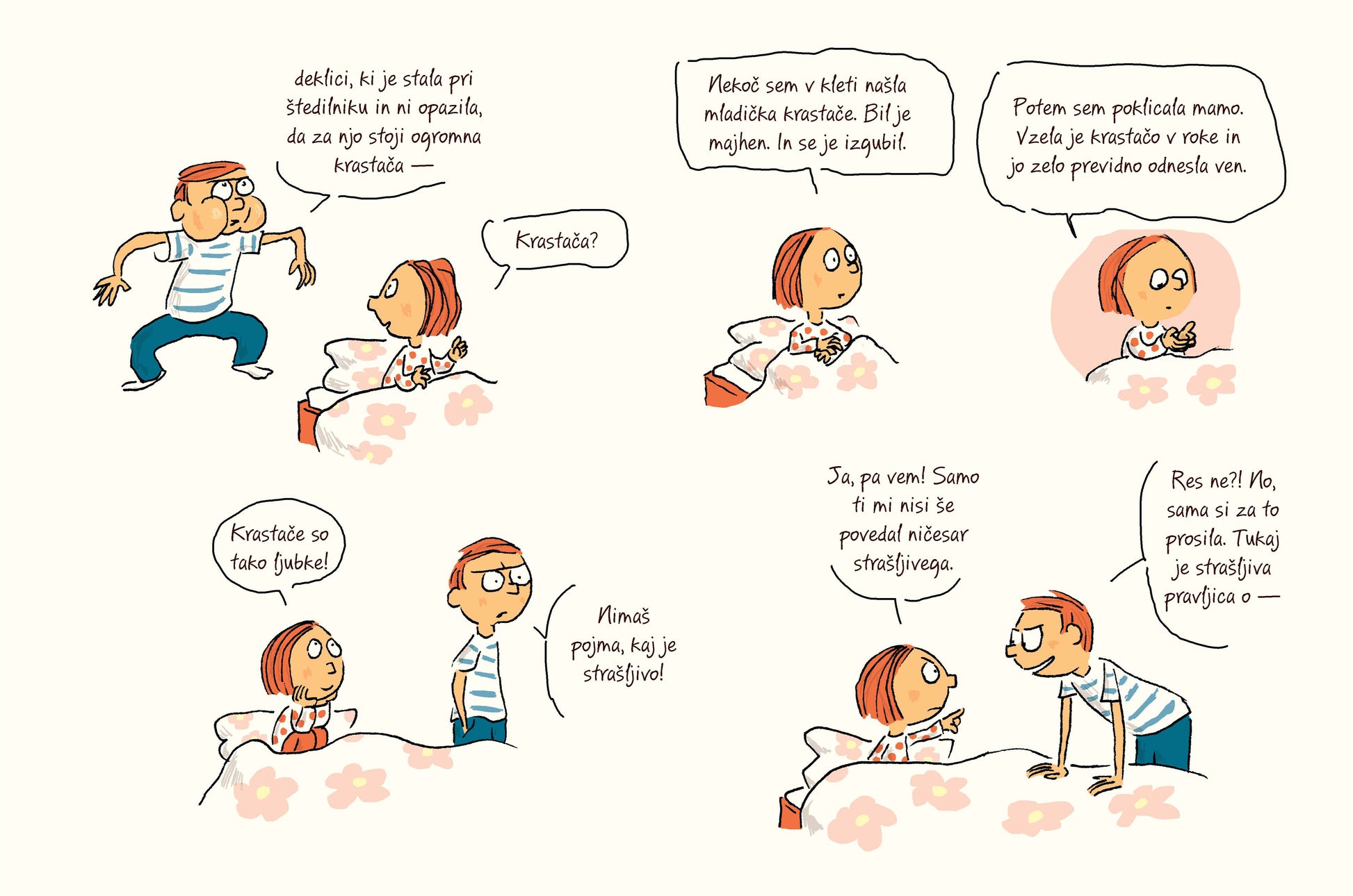 Ko staršev ni doma, Bine pripoveduje strašljive zgodbe … a Neža se ne prestraši, temveč jih spremeni v pravo domišljijsko zabavo!